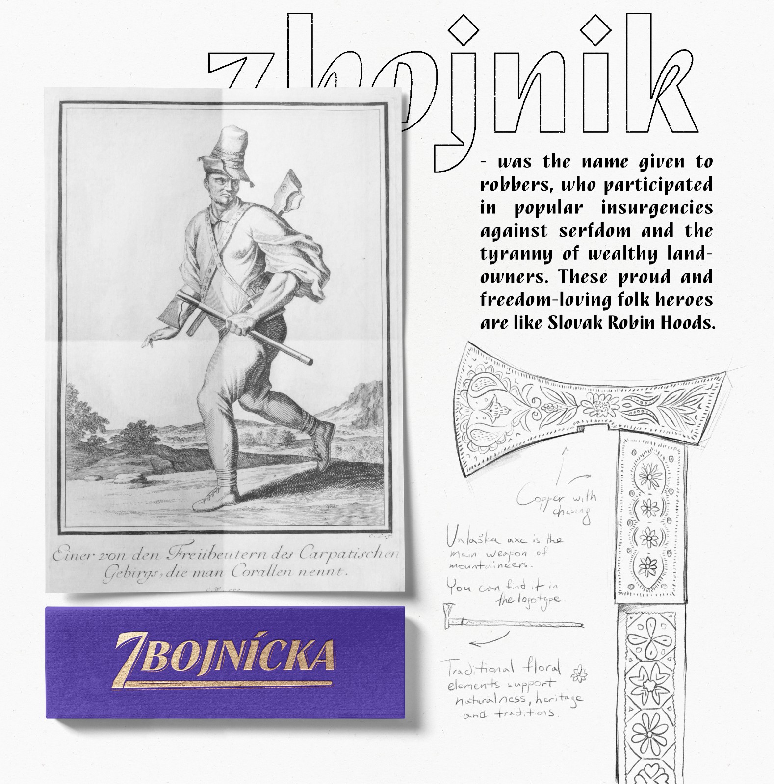 為了將新產(chǎn)品與競爭對手區(qū)分開來,并激發(fā)消費者的興趣,我們決定圍繞品牌“Zbojnícka”創(chuàng)建一個故事,意思是“屬于Zbojník”。