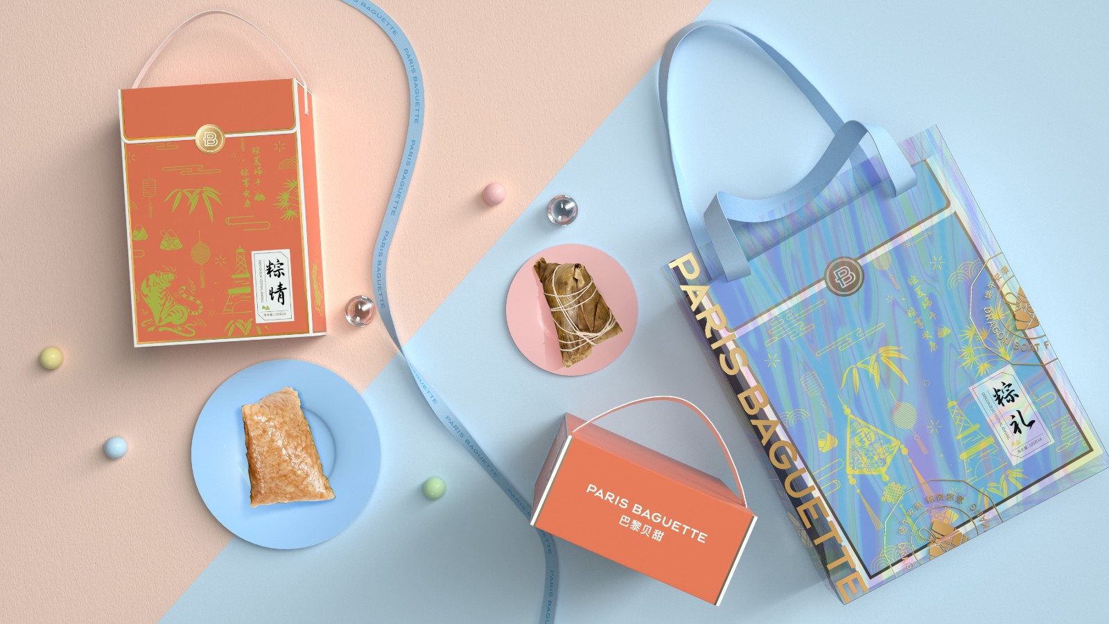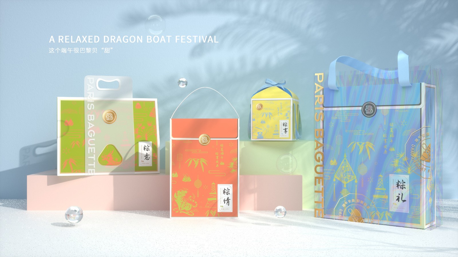 包裝設(shè)計策略:感謝品牌方的信任,第二次委托西林團(tuán)隊再次助力今年的端午系列包裝設(shè)計,巴黎貝甜做為國際品牌,而端午節(jié)是我們中國的傳統(tǒng)節(jié)日,大家都知道端午節(jié)有很多風(fēng)俗,吃粽子、劃龍舟、插艾草、涂雄黃、喝雄黃酒,西林采用東情西韻的設(shè)計理念,將兩者進(jìn)行完美演繹,做一款有顏值擔(dān)當(dāng)?shù)亩宋绨b,今年的包裝整體風(fēng)格輕松時尚,采用治愈系畫風(fēng)與色彩,主要用的是甜系色彩去表達(dá)“甜”的概念。讓傳統(tǒng)美食也弄潮,為粽子注入時尚基因,除了好吃,我們還要好看。