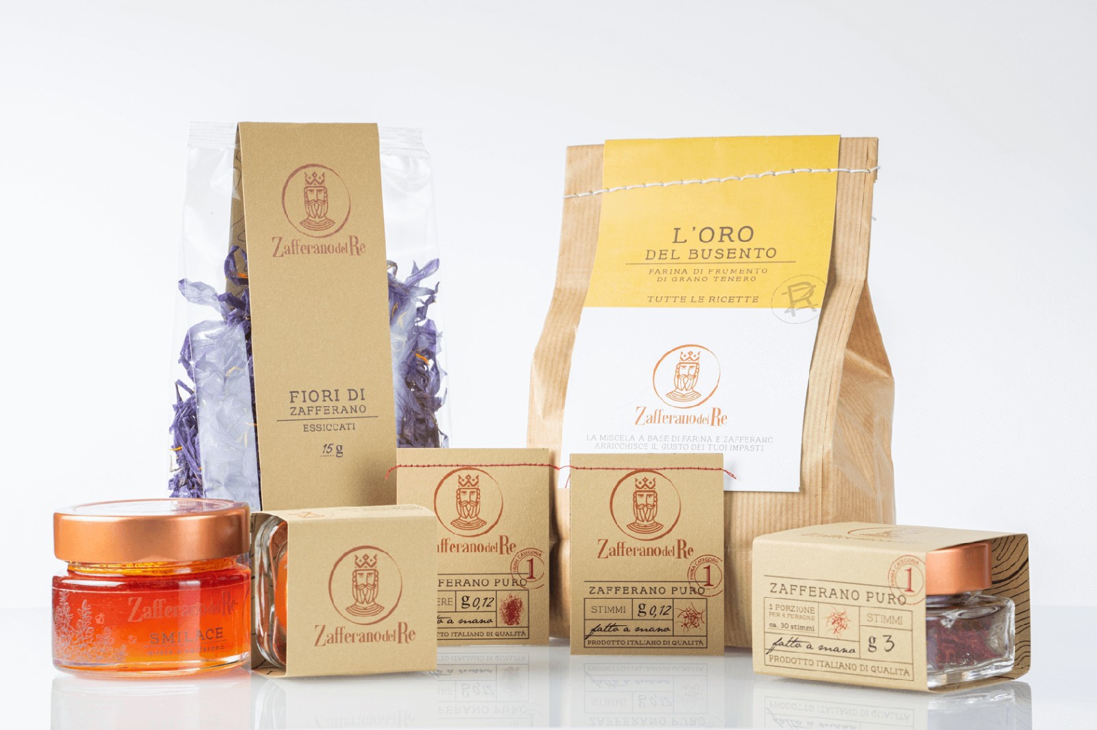 Zafferano del Re 是高品質(zhì)藏紅花產(chǎn)品品牌。除了純藏紅花和藏紅花干花以外,它還生產(chǎn)和銷售兩種獨特的藏紅花風味產(chǎn)品:蜂蜜和面粉。