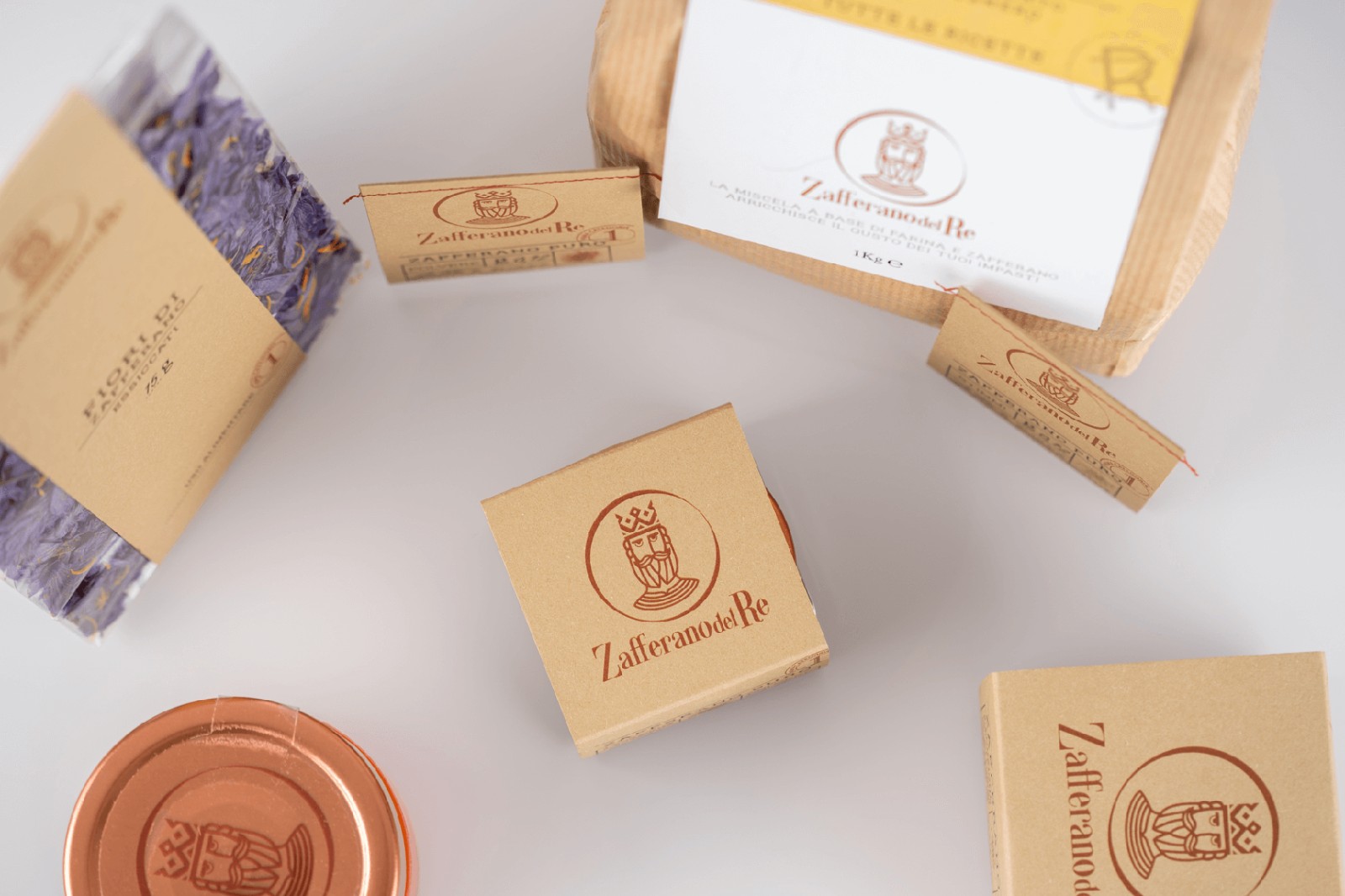 像國王寶藏中的黃金那樣的貴重產(chǎn)品,以純藏紅花的形式分布在柱頭和粉末中,像食用花卉一樣干燥,加到蜂蜜中成為原始的Smielace,與面粉混合后變成L'oro del Busento。每個包裝都是用手封閉的,即使是單劑量包裝的密封圈也帶有紅色螺紋接縫。每包中都包含一張藏寶圖,以強調(diào)藏紅花的概念:藏寶。