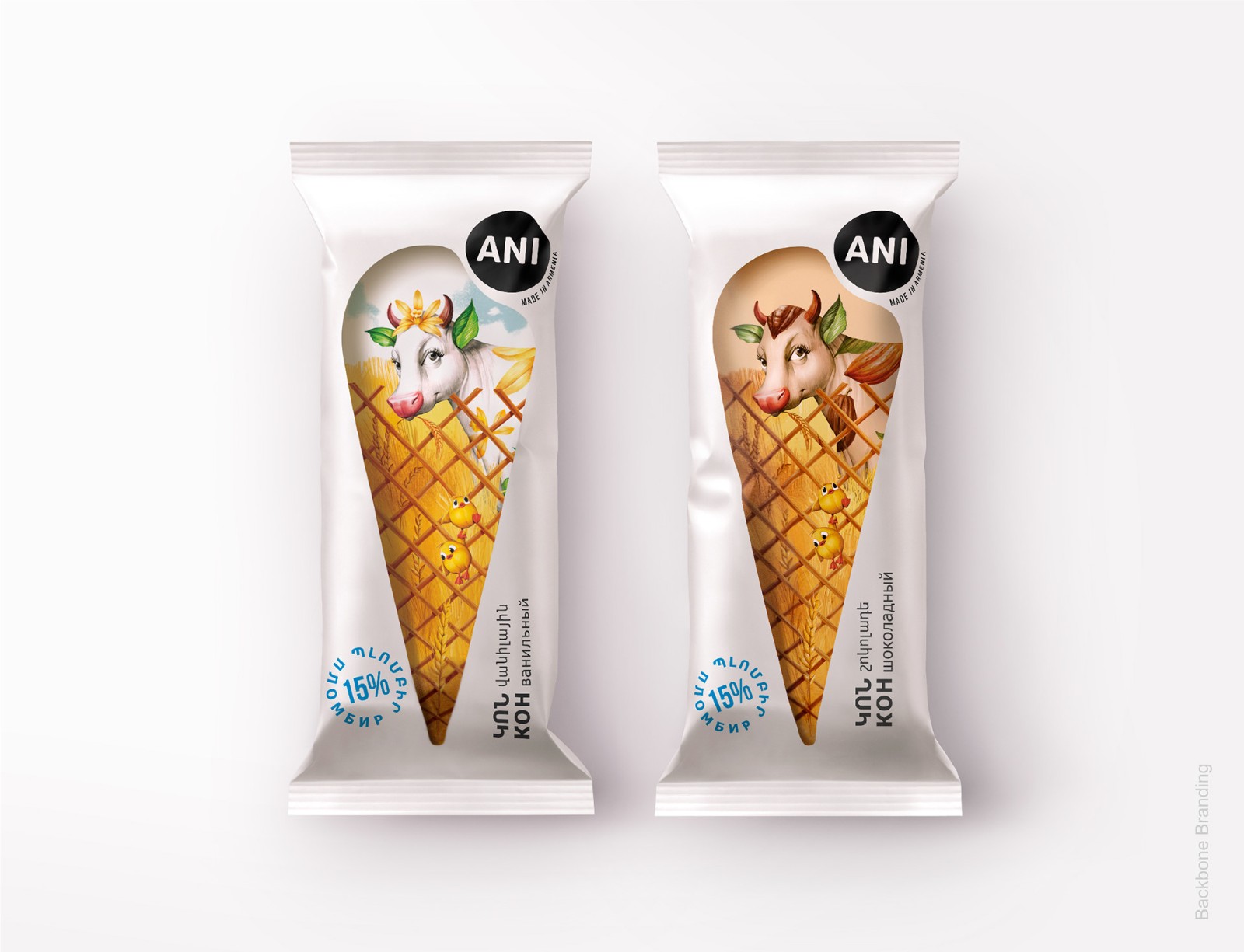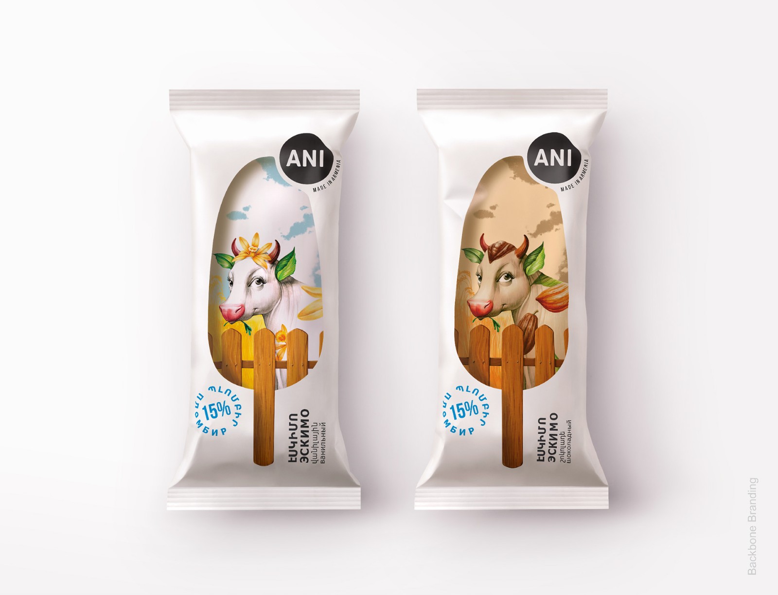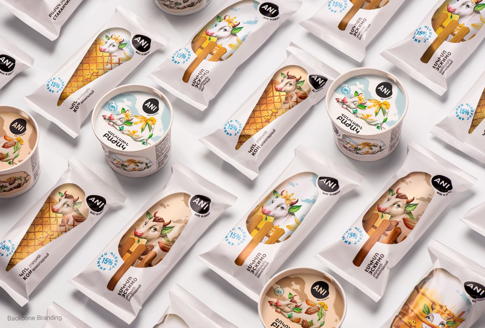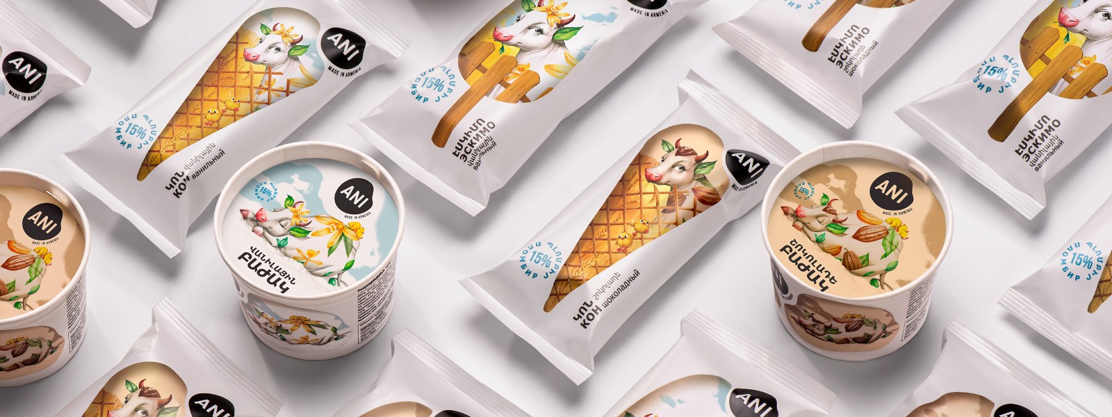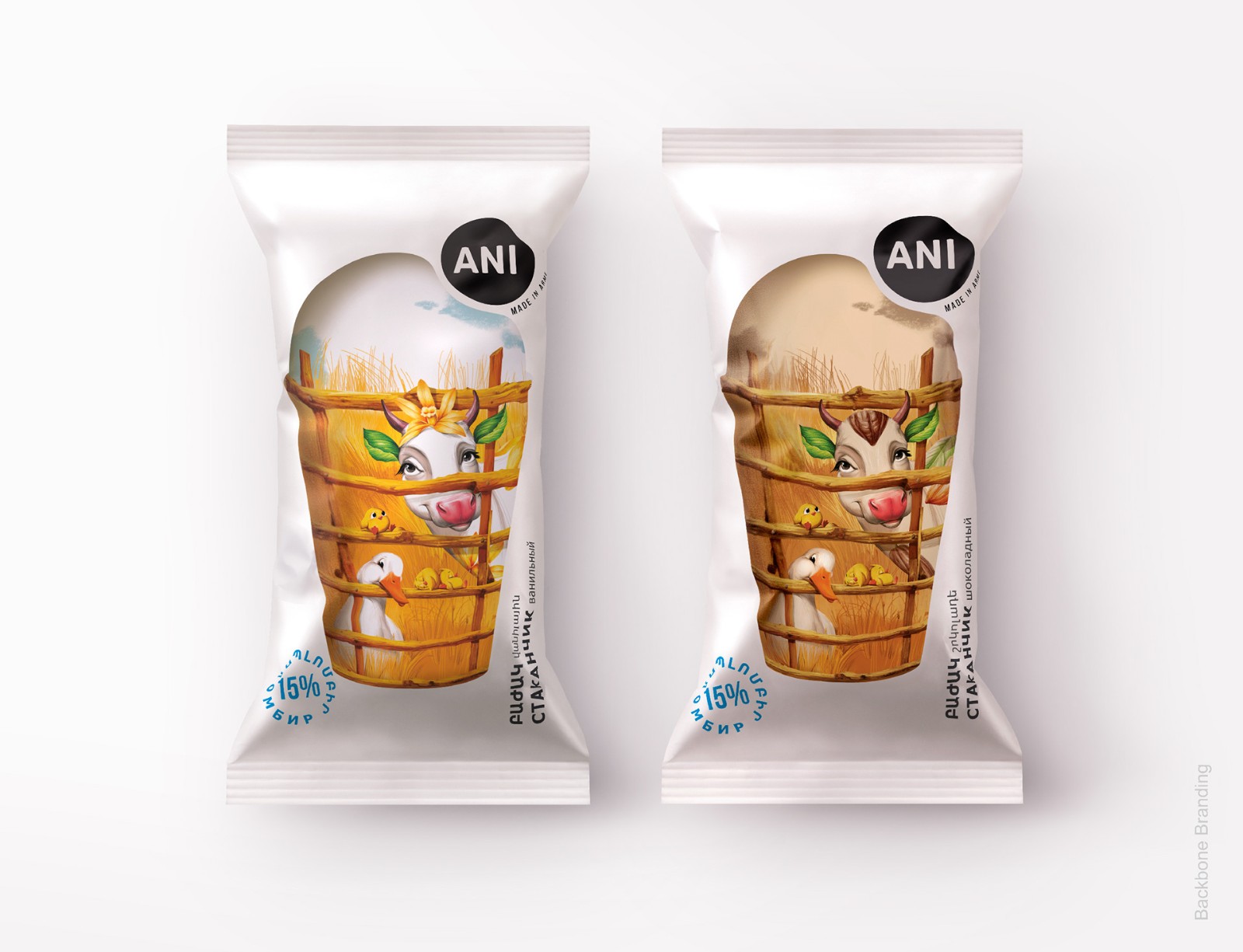 因此,每當消費者從遠處看到超市冰箱里的冰淇淋時,他都會看到一種令人垂涎的冰淇淋,在白色啞光背景下得到了強烈的強調(diào),從而產(chǎn)生了新鮮和適口性的聯(lián)想。通過仔細觀察,他們看到了“Tzaghik Kov”與它的朋友們——可愛的小雞和一只鴨子在不同的田園風光中深受喜愛的身份,借助它們,我們想展示養(yǎng)花牛的健康環(huán)境。這樣做的目的是從遠處就可以看到所有物。