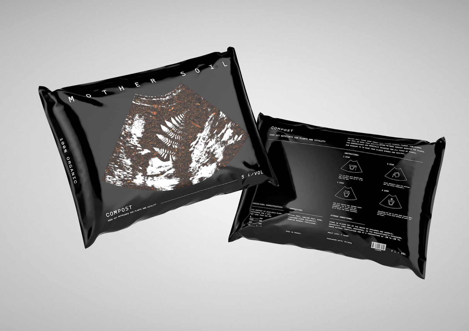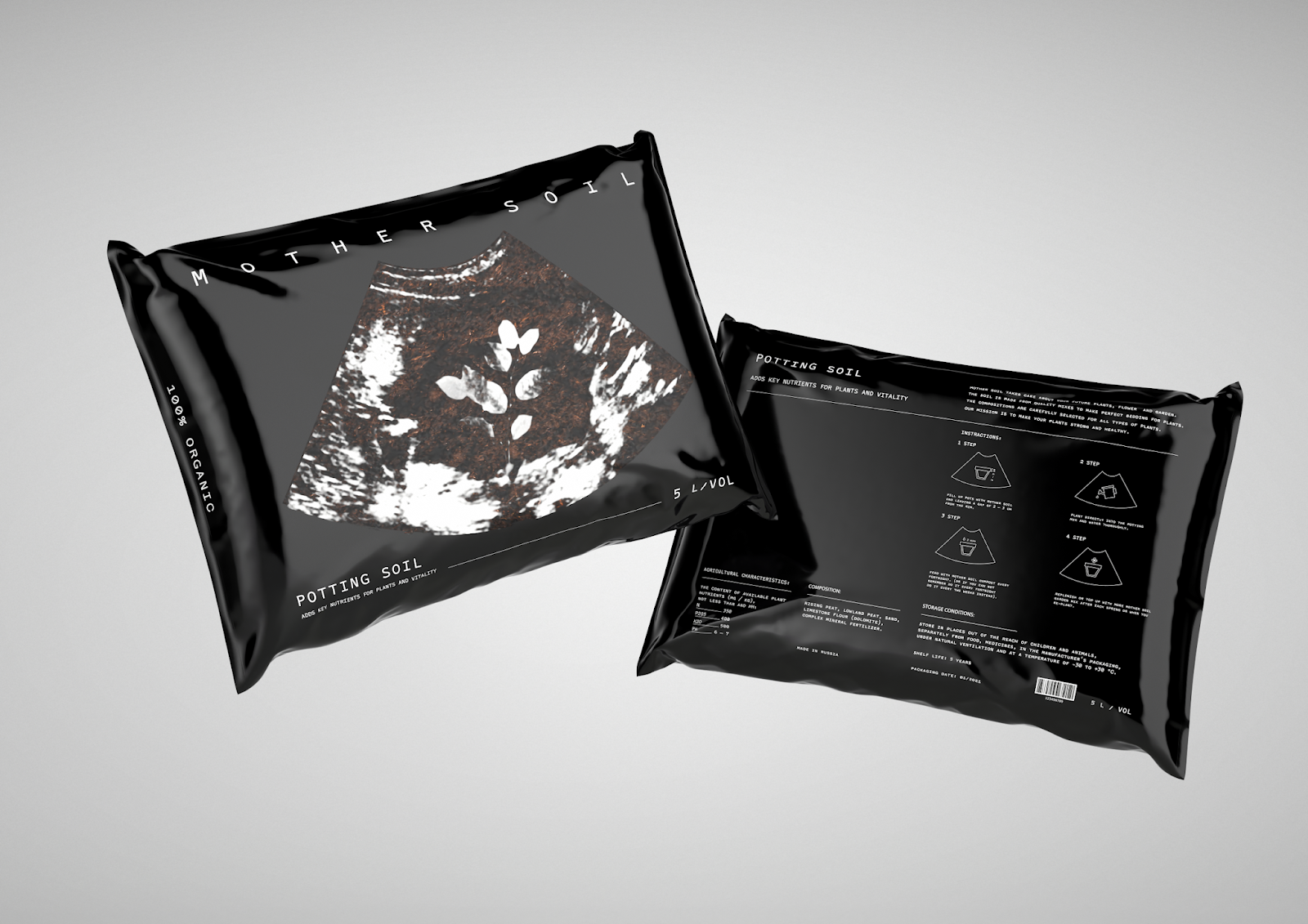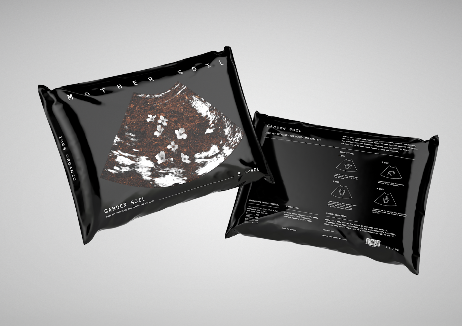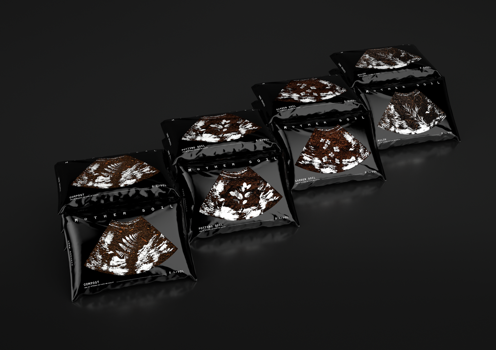 該設計的靈感來源于自然生育能力,通過懷孕超聲波屏幕直觀地表現(xiàn)出來。地球在全世界被稱為地球母親。通過對土壤的隱喻,設計被修改并轉化為包裝土壤設計。該生產線包含四種不同類型的土壤:堆肥、覆蓋物、園藝和盆栽土壤。包裝上以超聲波懷孕窗口的形式進行的透明切割顯示了土壤的類型。